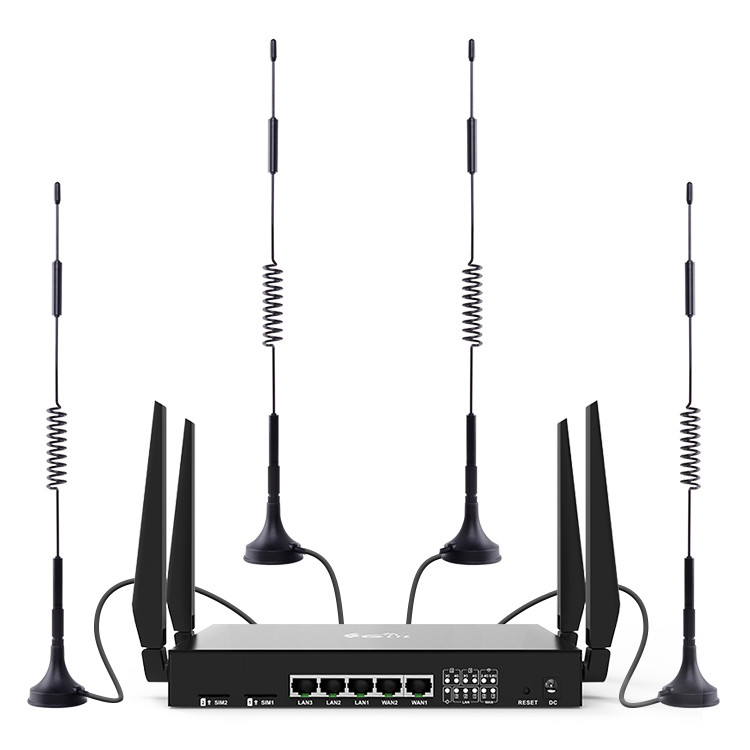 Ce produit prend en charge jusqu'à 2 cartes SIM pour superposer les réseaux.Transmet des signaux sans fil, équipé de 2 WAN (les réseaux SIM et WAN peuvent être superposés) + 3 LAN pour un accès facile à Internet sans fil/filaire.Il existe un réseau à tout moment, n'importe où, et il est facile de fournir un réseau à d'autres appareils.Équipé de 4 connecteurs d'antenne SMA, peut être connecté à des antennes externes.Il prend en charge plusieurs utilisateurs accédant au réseau en même temps et dispose d'une interface WebUI facile à utiliser.